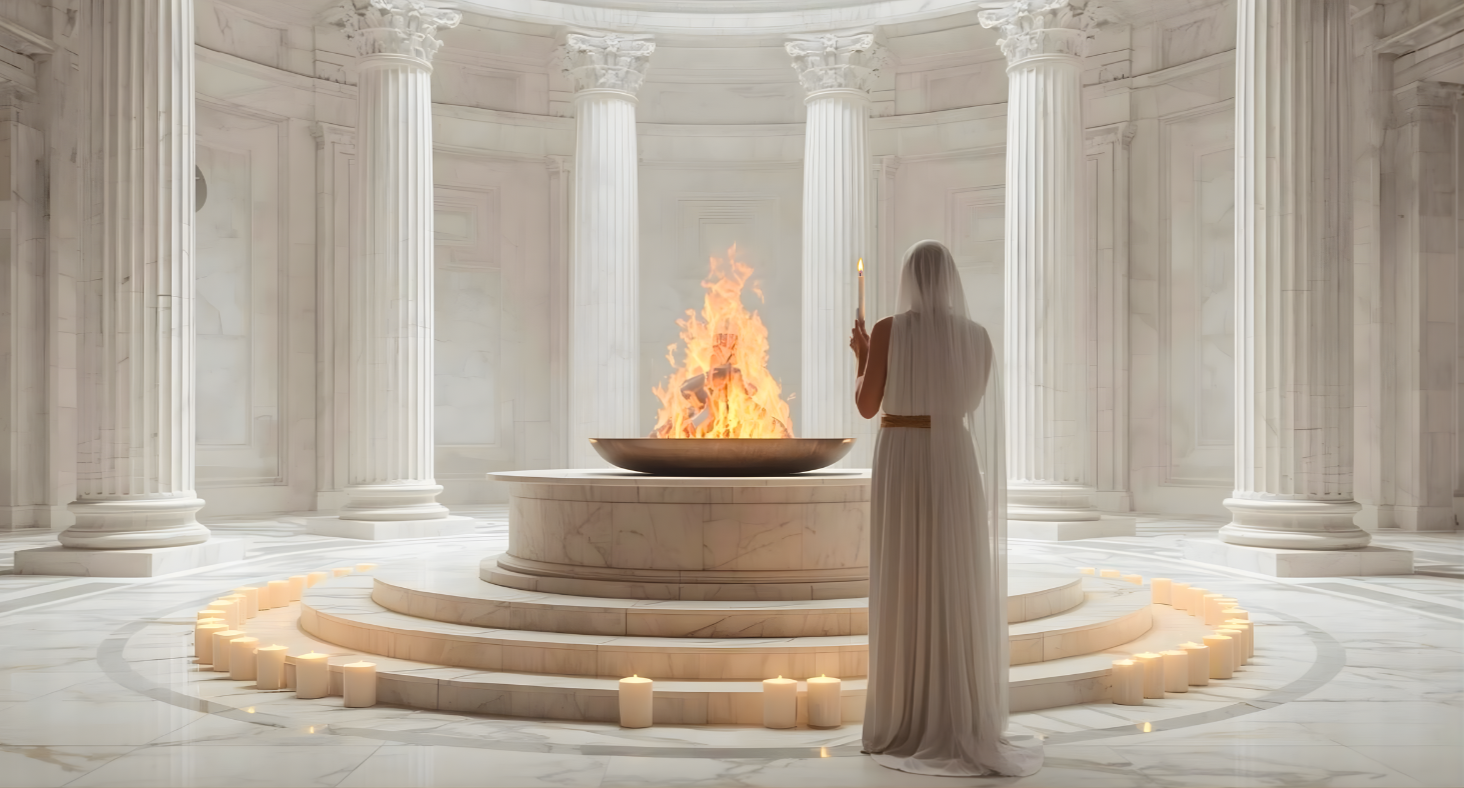 … is the powerful ancient Roman goddess of the home and hearthfire. For centuries, her Eternal Flame was kept alight in her temple by her priestesses, the esteemed Vestal Virgins, with strict ritual and great ceremony.