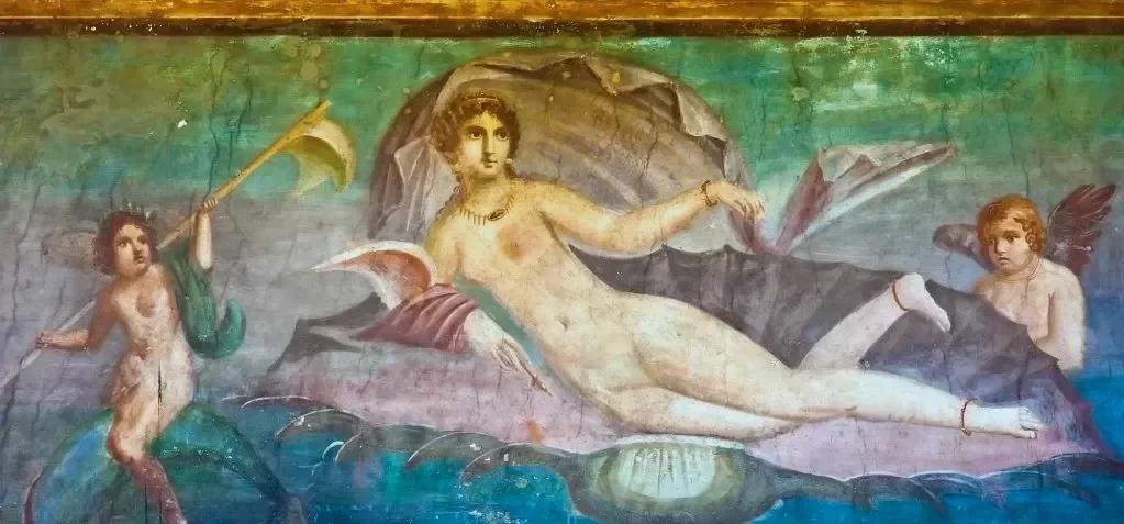 Daughter of Jupiter, she was born from the sea, and her symbol is therefore a seashell or a dolphin.